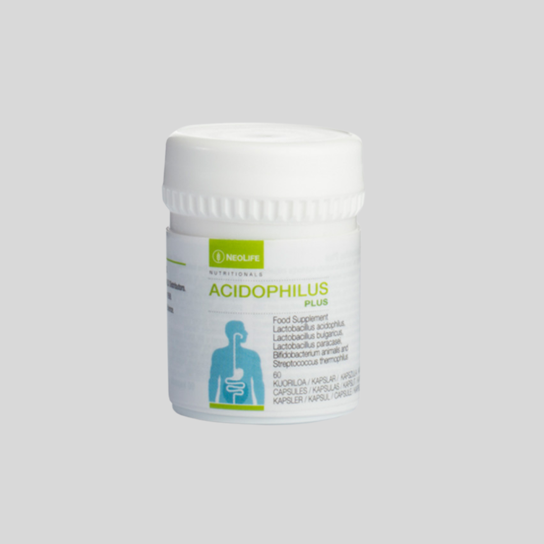 NeoLife's supplement of beneficial bacteria, Acidophilus Plus, combines potency with technology to guarantee that live microorganisms survive the stomach acid and reach he intestine to deliver viable organisms to support optimal digestive and colon health.