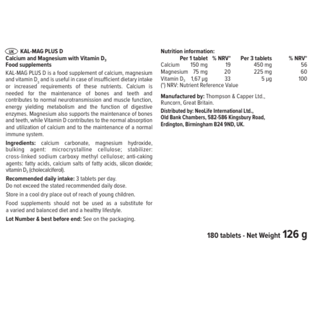It is becoming increasingly clear that magnesium plays an important role in the muscle function. It is known that stress breaks down the body's stores of magnesium. Neolife Kal-Mag Plus D is one of the most valuable supplements available providing two minerals which contribute to your wellness.