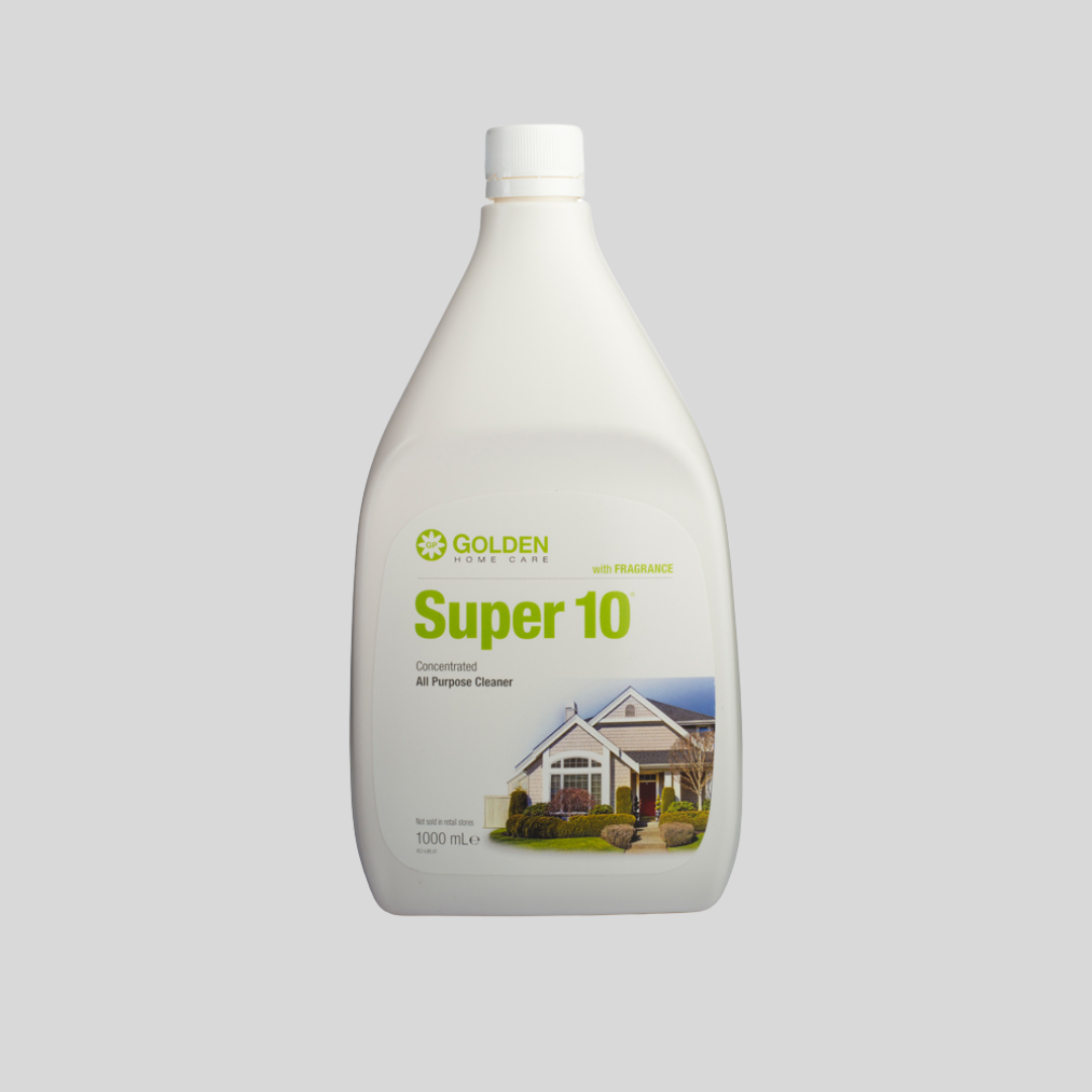 Super 10 gives you extra cleaning power because of its unique, 3-way action formula. Firstly it penetrates the spot or stain and gets between the surface and the dirt. Secondly, it dissolves dirt and grease. Thereby breaking it up for easy removal. Finally, Super 10 emulsifies the first into the cleaning solution for easy removal by rinsing or wiping.