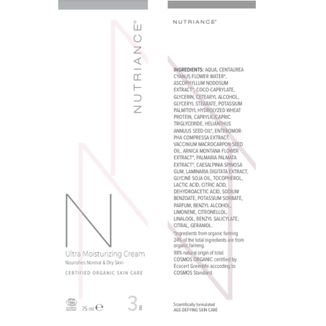 Nutriance Organic Ultra Moisturizing Cream is a richly nourishing and soothing cream designed for optimal hydration of normal to dry skin types. With exclusive marine